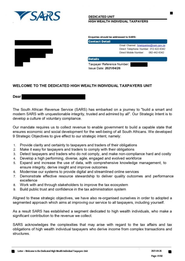 SARS Targets Wealthy Taxpayers